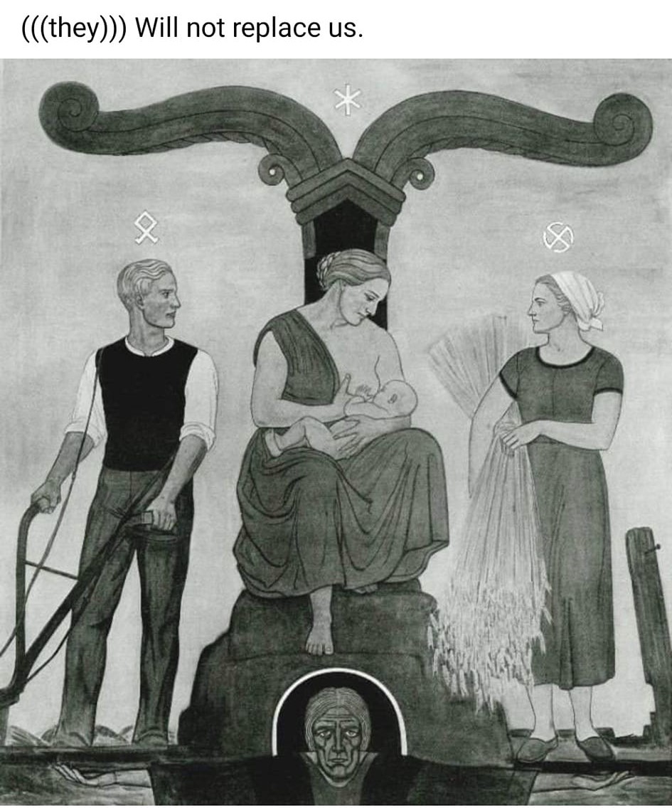 Look out for an over-emphasis on “heritage” and “blood”. Folkish groups will also commonly use alt-right / fascist talking points, such as great replacement theory, antisemitic language, and the triple-parenthesis / “echo” symbol.